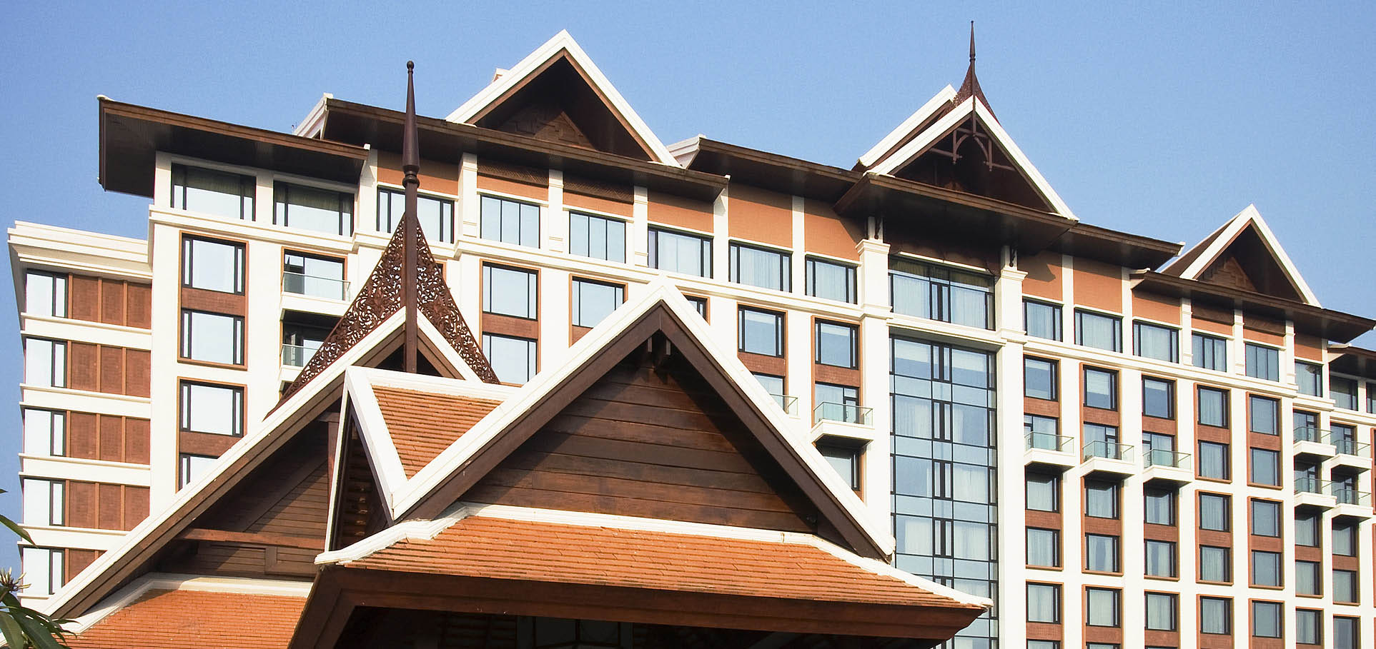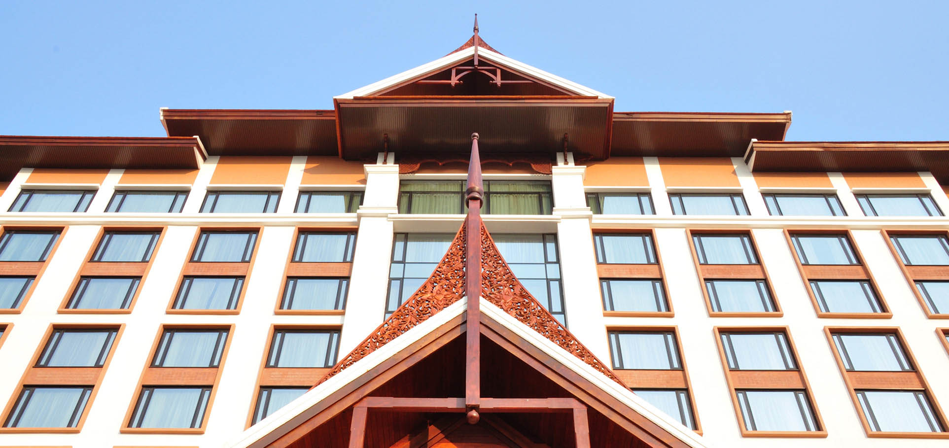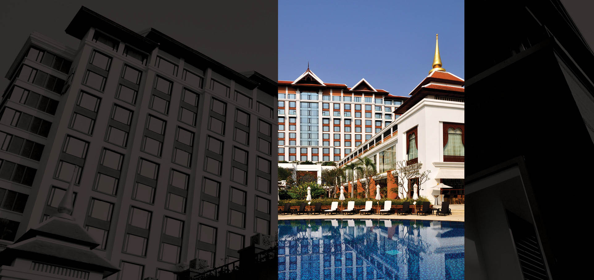 Chiang Mai is a city endowed with the country’s diverse cultural heritage and modern aspirations. Taking inspiration from modern rationalism from Thai vernacular architecture, the designer aspired to create an iconic building and a modern efficient hotel with a notable theme that reminisces the old walled city of Chiang Mai. Both plans and elevations are of simple geometric shapes, creating a harmonious and dignified atmosphere. Planning is efficient and straightforward; the cluster of pagodas accented with gold-plated finials pitched roofs, which are guard houses and stair towers, mark the entrance of the hotel. The tower’s design is a modern reinterpretation of traditional Lanna architecture and it is crowned with a contemporary transformed Lanna-style pitched roof. Through meticulous detail design, the architectural expression of the hotel reflects simple elegance and refinement of Northern Thai’s calm and relaxing lifestyle.