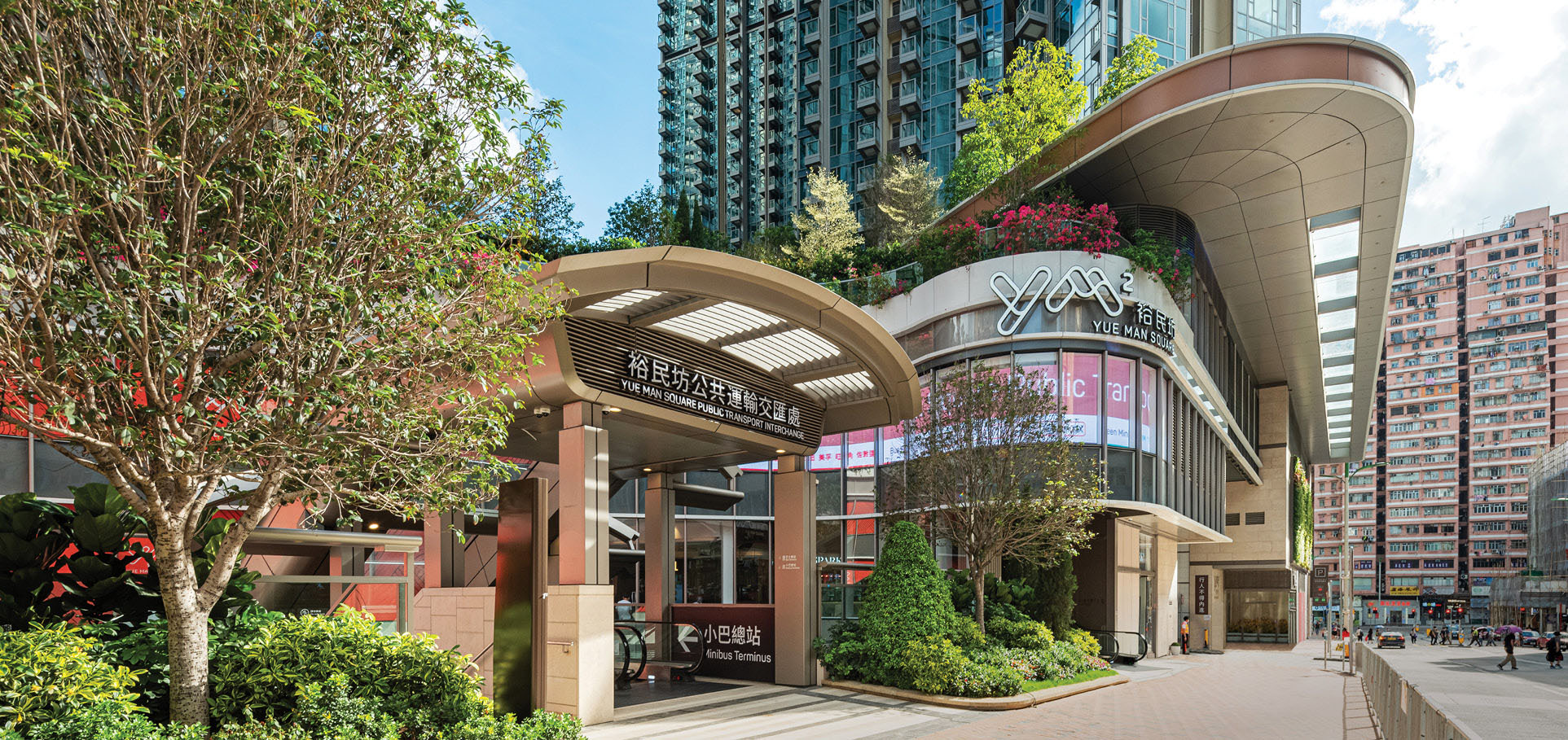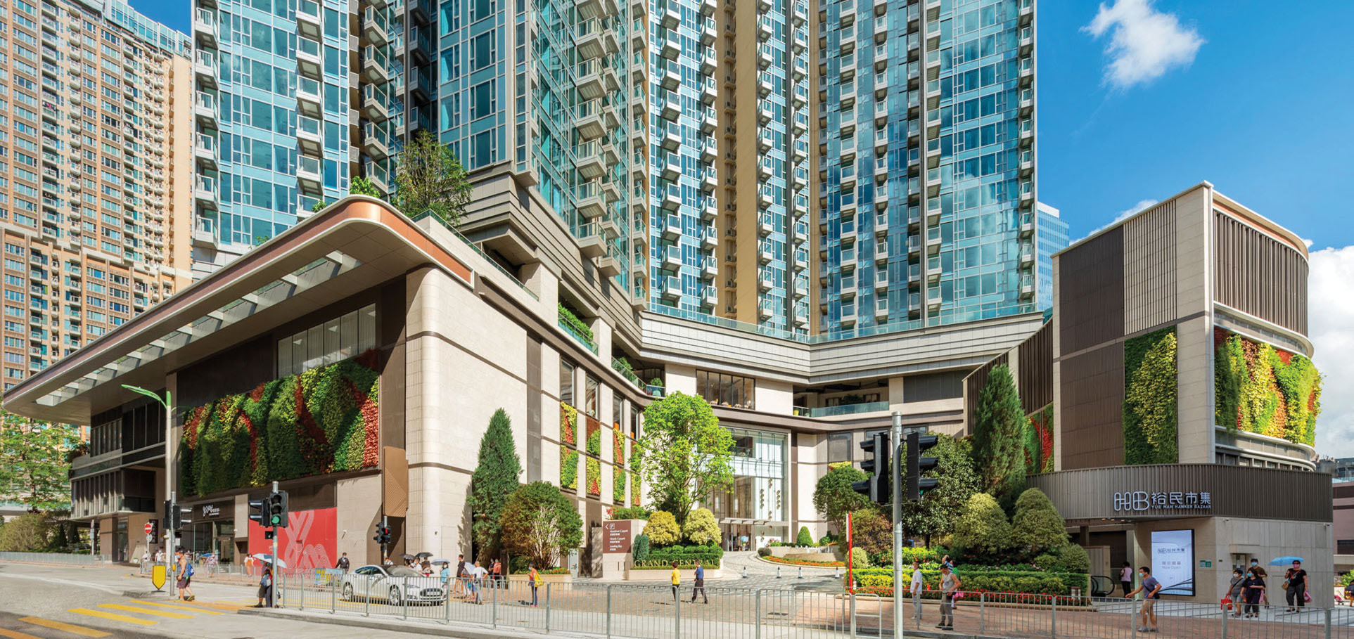 Grand Central, abuts Mut Wah Street and Hip Wo Street, where local markets, transport terminals and public facilities abounded. The project comprises 1,999 residential units provided in the Tower portion, a two-level public transport interchange (PTI) for franchised buses and public light buses, a hawker bazaar (HB), a refuse collection point (RCP), public open space and retail shops in podium portion. Four residential towers are aligned on two sides of the podium, with a 77,000 square feet large outdoor green space provided in the middle as a leisure park at the top of the podium. Multi-level connections from the street entrance, footbridge, and MTR through future Development Areas 4 & 5 are created so that all facilities on podium are well-connected to enhance public accessibility in Kwun Tong.