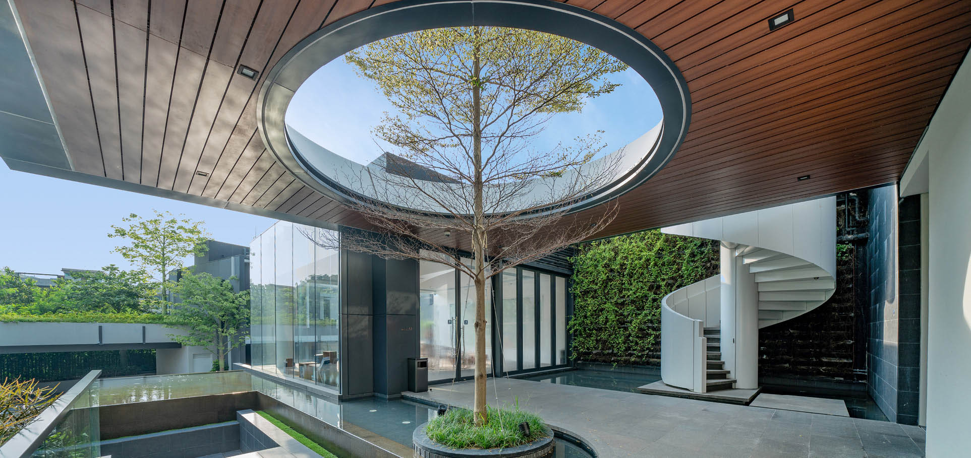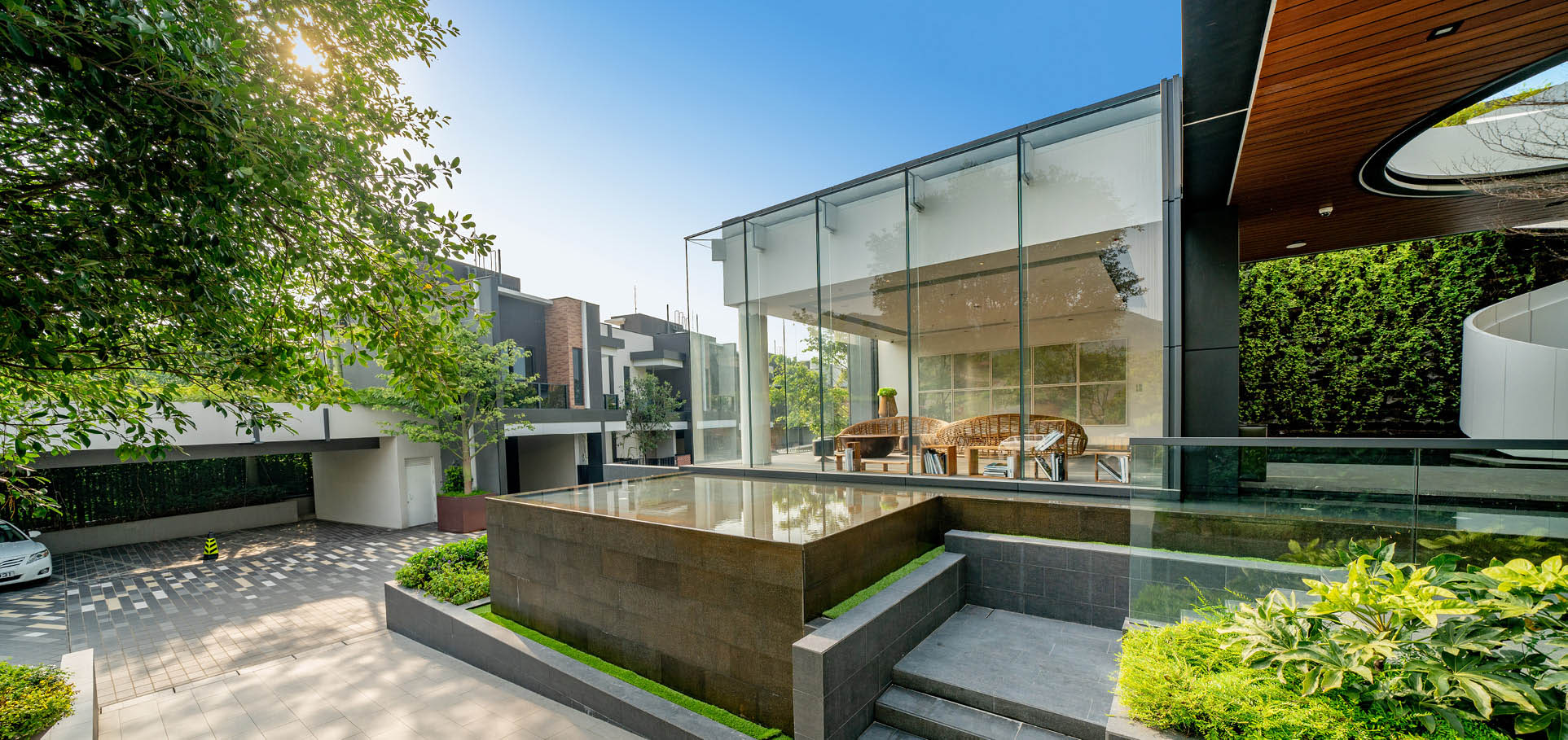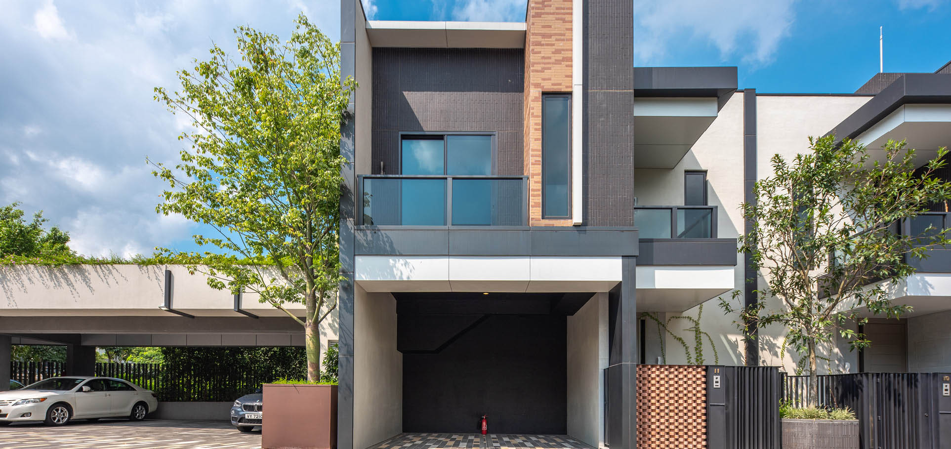 The development comprises 2 blocks of 4-storey apartment buildings, 11 nos. of 2-storey semi-detached houses and a single 1-storey clubhouse building. Integrating with the existing low-rise residential context, a variety of building types and heights have been specially planned - with slightly higher density apartments, lower density semi-detached houses and a single-storey clubhouse building in the heart of the site acting as the visual and activity focal point. The façade with understated hues of whites, light greys and pale orange complimenting the natural setting of abundant greenery and perfect blue sky.