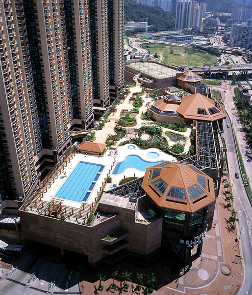 There will be a total of five residential towers. Each of the three middle towers will have 45 storeys and the tower at either end 44 storeys. Typical unit size varies from 60m2 to 70m2, giving 1,684 units in total. As the optimal site planning to mitigate the impact of traffic noise, the residential towers are set back from Lung Cheung Road to align with the northern boundary. The commercial podium comprises of 3 main commercial floors of retail shops, restaurants & cinema. A public transport terminus with MTR entrance will be provided under the commercial podium at G/F. There is also 2 storey of basements for carparking and loading/unloading activities. The external façade of the commercial podium will be clad in granite slab to give a prestigious image whereas the interior decoration will carry a ‘Hollywood’ theme to add interest.
