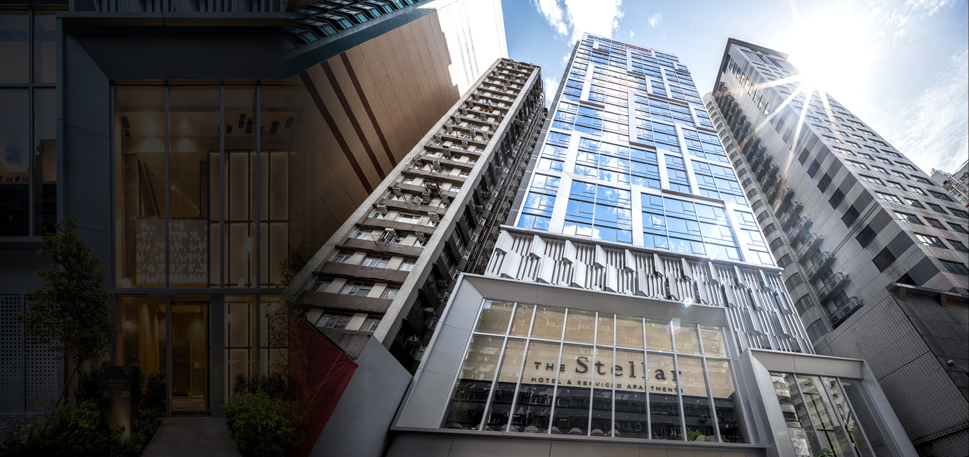 Drawing inspiration from the history of sugar refinery businesses near Chun Yeung Street, the hotel's facade design incorporates the concept of Sugar Cubes and Sugar Crystals. The facade design features repeated cube-shaped geometries, resembling sugar cubes. Two prominent cubes serve as the main entrance on G/F (L1) and the distinct double-storey lobby lounge on 1/F (L2). This architectural language continues throughout the hotel tower, breaking down the monolithic glass facade into shimmering cube-shaped fragments that stand out in the local neighbourhood.