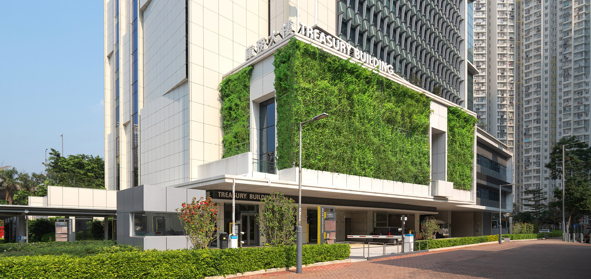 The office floors enjoy the highest efficiency, achieved with a layout bespoke to the geometry and orientation of the site. The offices are equipped with a high-performance façade system, which records an OTTV of 9.6W/m2. Despite the state-of-the-art technology applied, the design of Treasury Building is infused with a subjective design theme - the rich heritage of textile and garment industry of Cheung Sha Wan & Sham Shui Po, which symbolizes the project in its context. Various components in the façade design take on the imageries of certain elements of textile and garment design, for examples the profile of vertical sunshades resemble the cotton spinning, the shaping of the sunshade connecting nodes resemble the shuttle in the weaving machine and the undulating cladding surface on the end-core walls resemble the woven pattern of textile . The resultant façade design of Treasury Building evokes a contemporary building form, depicting a highly compact, efficient and open civil service in action. Its construction employs the state-of-the art technologies, and yet is embellished with details which respect the heritage background of its location.