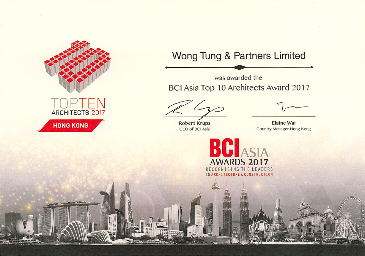Congratulations, Wong Tung & Partners was awarded the BCI Asia Top 10 Architects Award 2017.