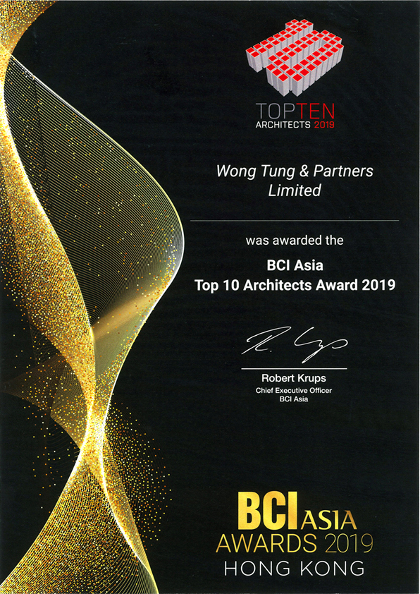 Wong Tung and Partners once again awarded BCI Asia Top 10 Architects Awards 2019 – Hong Kong. Congratulations!