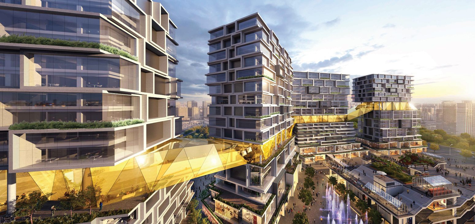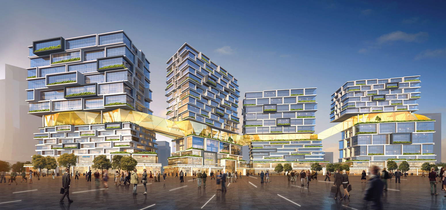 The site is located along a highway in the Zhengzhou New Area, between the contemporary provinical capital city of Zhengzhou and the ancient city of Kaifeng. The design proposal is a vibrant 24-hour live-work city village consisting of mall, hotel, office, F&B hub and apartments. The first 2 levels of the apartments is an open-plan retail village. It connects to other buildings with link bridges enhancing the spatial experience and accessibility. The 4 apartment blocks provide various types of flats for people with different needs. A large clubhouse locating in the mid-level connects all the apartment blocks, encouraging communal life experience for residents. It mimics a gemstone hanging in mid air that catches the attention of cars passing through the inter-city highway.