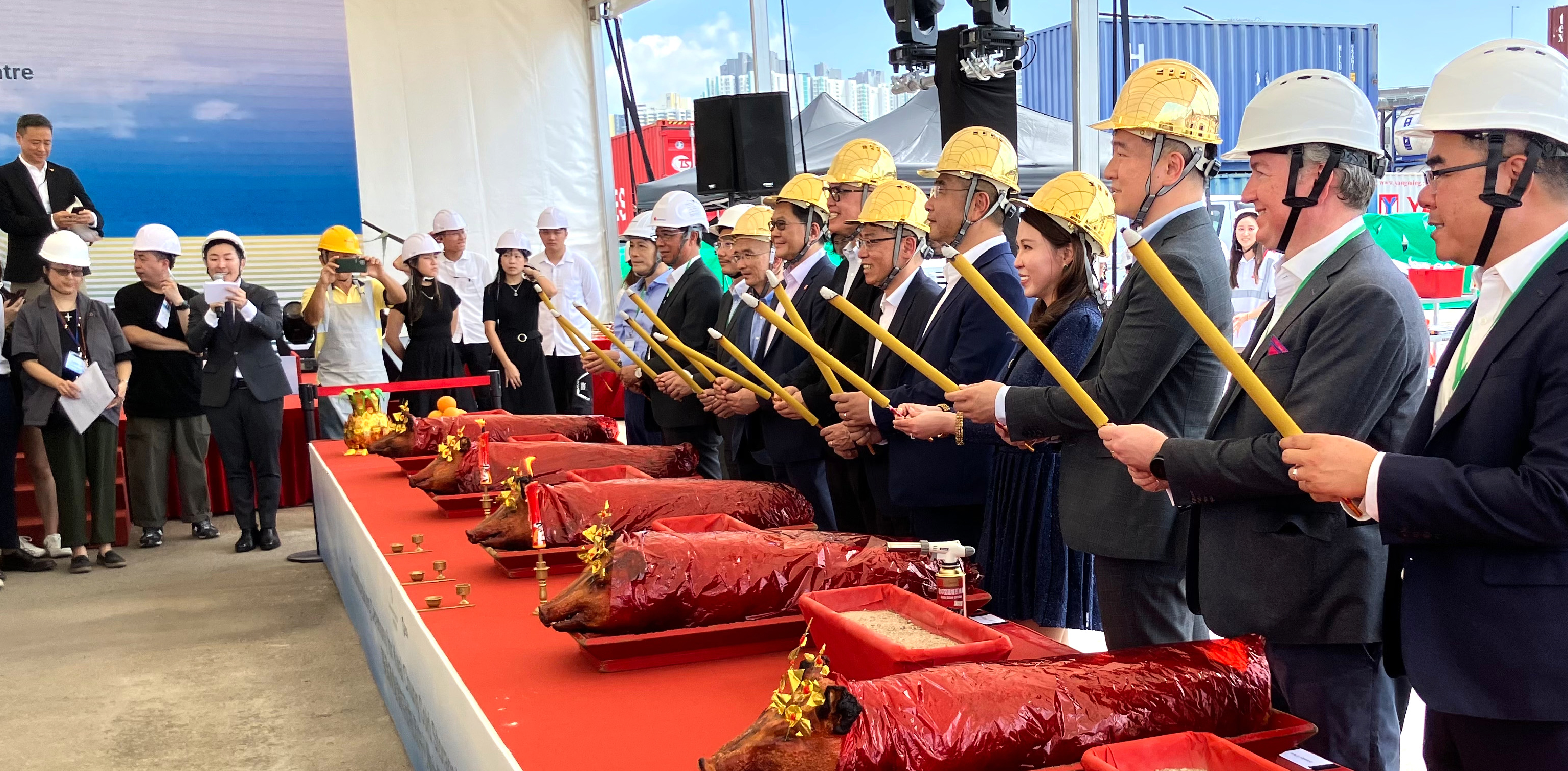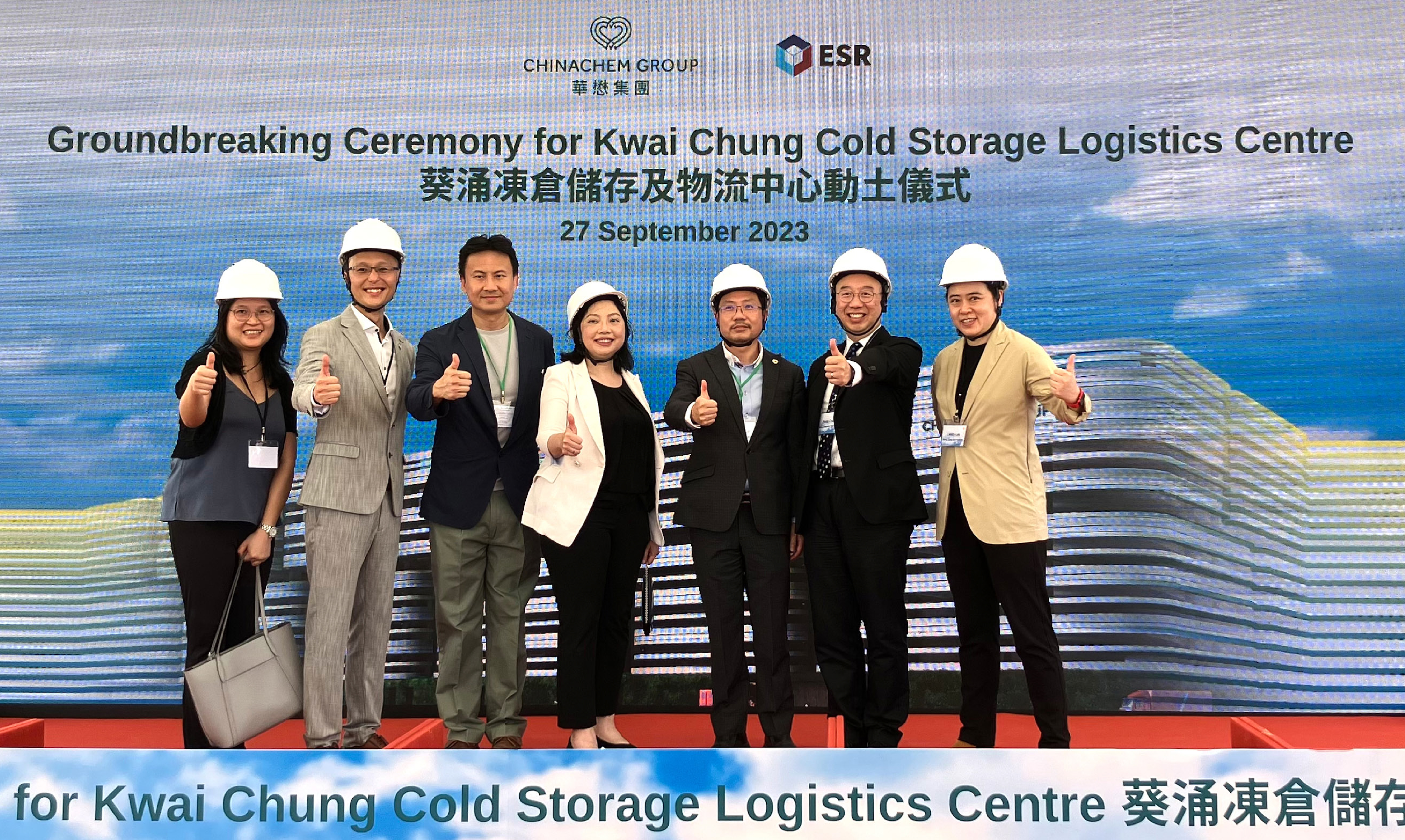 ESR & Chinachem break ground on Hong Kong’s most advanced multi-storey and multi-tenant cold storage logistics centre in Kwai Chung, the first-of-its-kind and the largest to be built in Hong Kong for 2 decades. The momentous Ground Breaking Ceremony was held at the site on 27th September attended by Mr. Lam Sai Hung, Secretary for Transport and Logistics, HKSAR Government; with the presence of Mr. Jeffrey Shen, Ms. Chang Rui Hua and Mr. Allan Wang of ESR Group; Mr. Donald Choi, Mr. Ricky Tsang and Mr. Damien Wu of Chinachem Group.