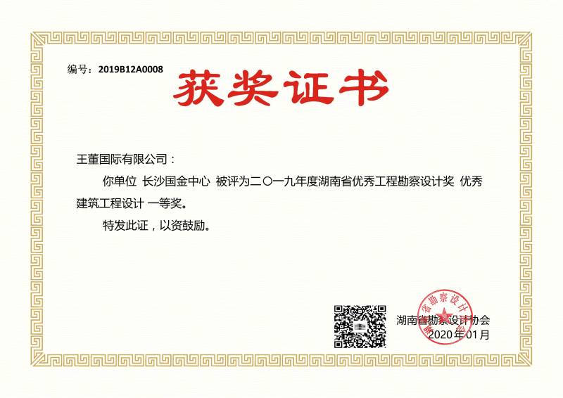 Changsha IFS awarded the 2019 First Prize of Hunan Province Construction Design Excellence on Architectural Design by Hunan Province Exploration and Design Association.