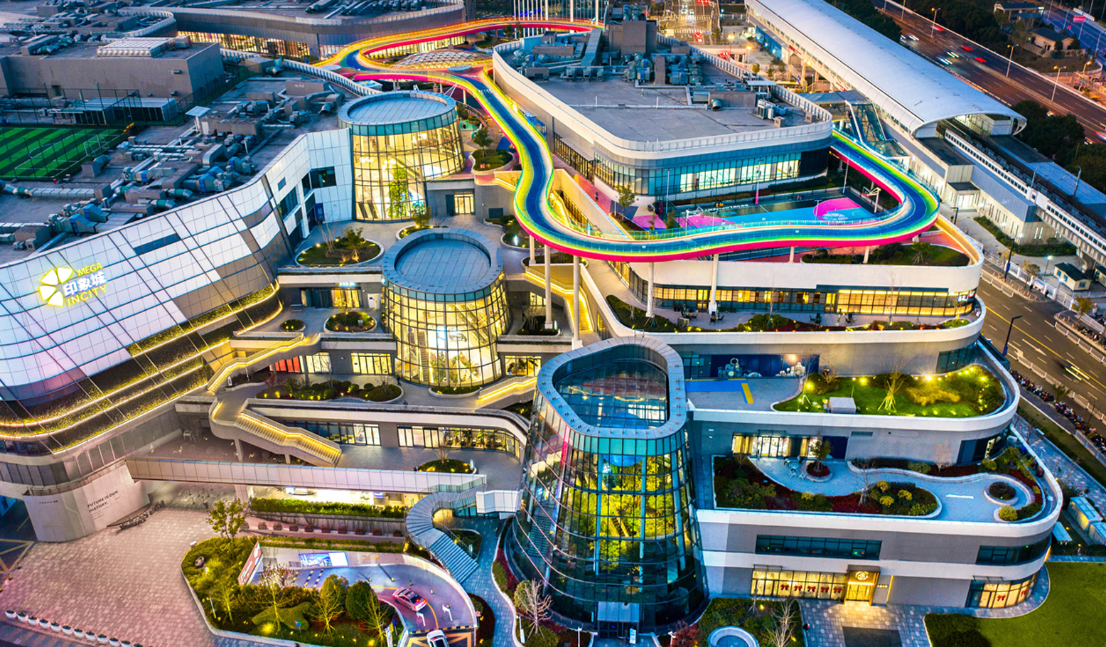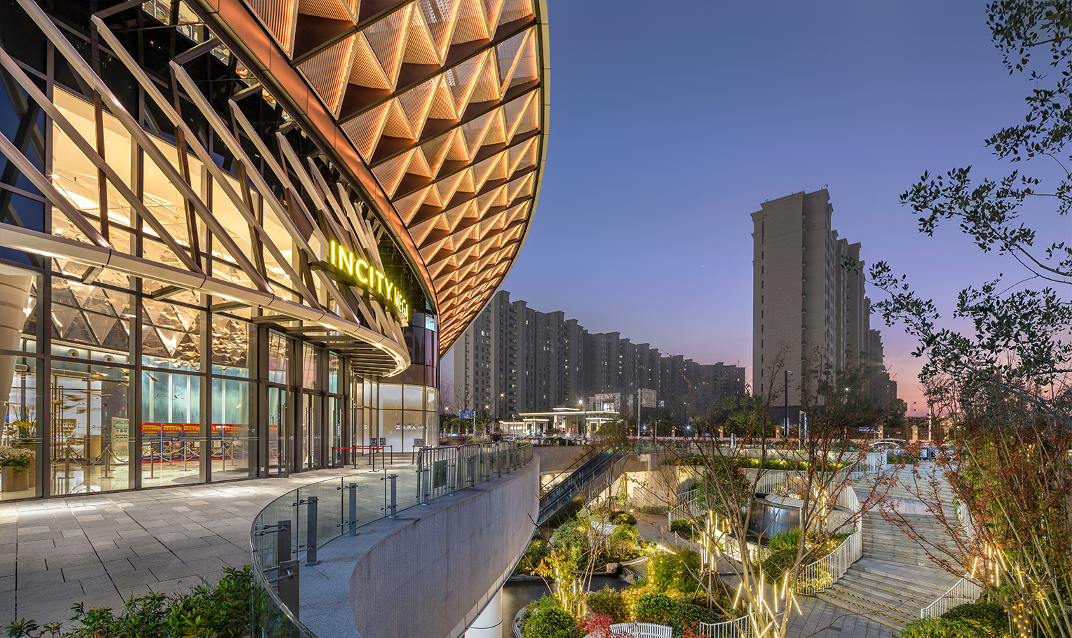 Incity MEGA is a massive 340,000sqm retail and entertainment complex located in Nanxiang, Shanghai, just 3km from the Outer Ring and 18km from downtown. This historic and cultural town also serves as a thriving population center, conveniently situated near the new Line 11 station.The complex features over 400 shops and experiences, including a skate rink, theatre, 10-hall IMAX cinema, and an elevated runway and terraced garden with three eco-pods. The design strategically places major attractions around an internal street, creating a dynamic and engaging environment. A key design element is the terraced garden, a semi-public space that connects all floors and eco-pods, culminating in an elevated jogging track. This indoor/outdoor, commercial/public interaction is encapsulated by the concept of a ribbon, wrapping the entire complex.