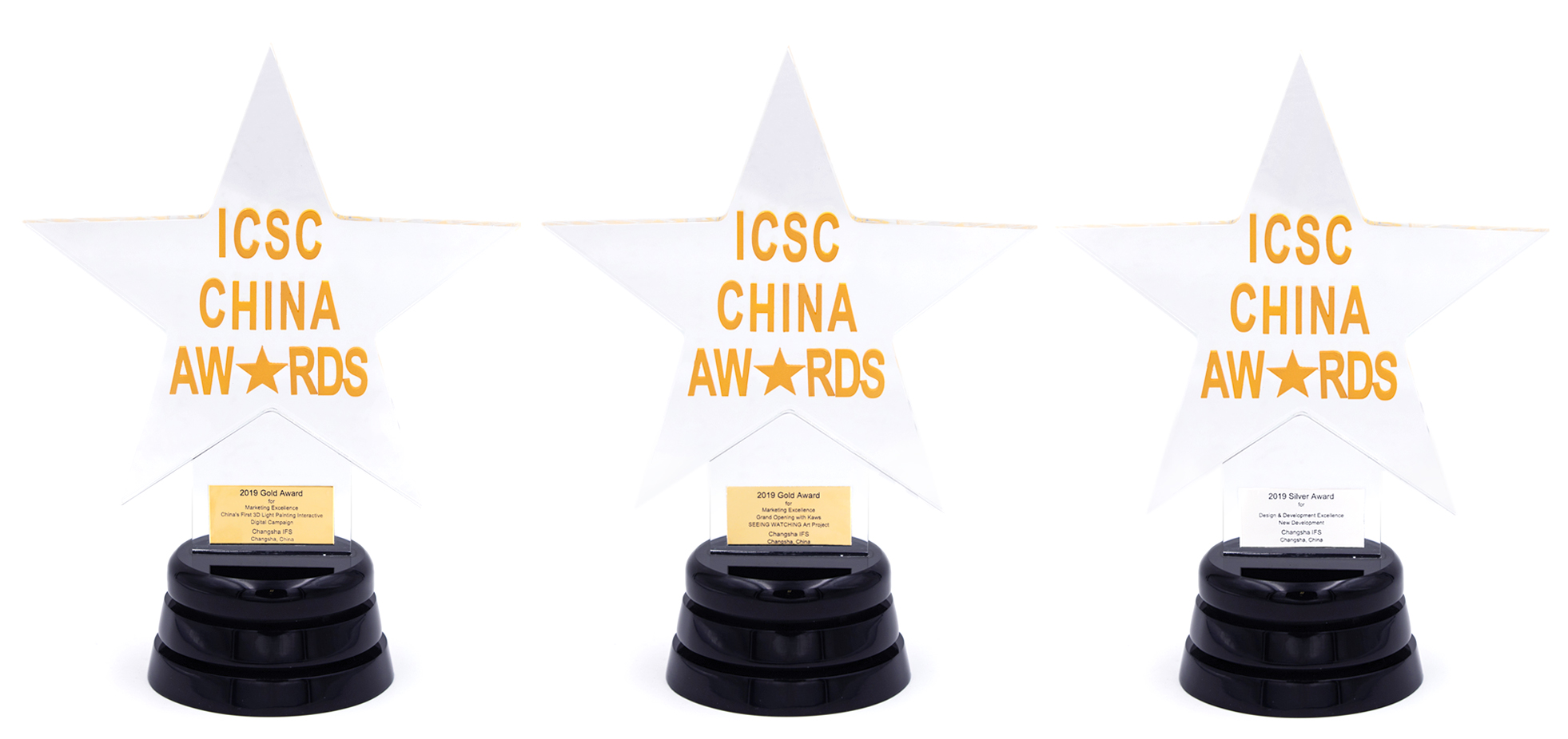 Changsha IFS received 3 awards from the International Council of Shopping Centers (ICSC), respectively Gold Award for Marketing Excellence China’s First 3D Light Painting Interactive Digital Campaign, Gold Award for Marketing Excellence Grand Opening With Kaws SEEING WATCHING Art Project, and Silver Award for Design & Development Excellence New Development.