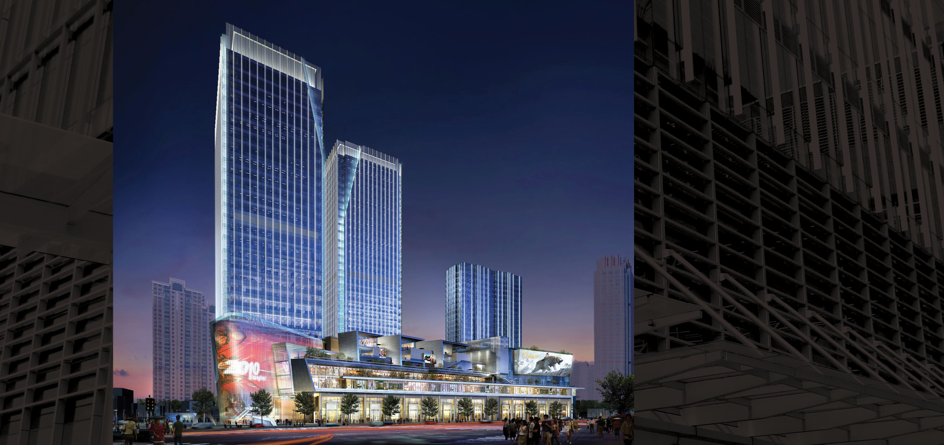 Located in the heart of Huai Hai Zhong Road in Puxi and at the interchange of three major rail lines with new transit stations and stations under construction nearby, this large mixed-use development–with a site area of approx. 40,000m2.