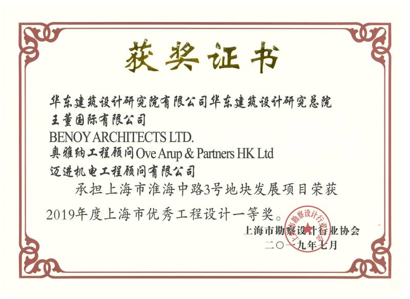 Shanghai ICC receives 2019 First Class Prize of Shanghai Building & Engineering Design Excellence by Shanghai Exploration and Design Trade Association (SEDTA). Congratulations!